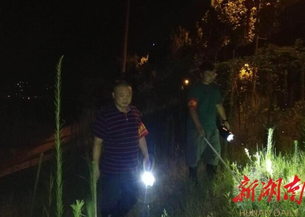 当天,又轮到赵志能值夜班了,这次他被安排和儿子赵龙飞一道值班。零点一到,他便带着儿子开始了第一轮的巡查。凌晨的南津港,伸手不见五指,只听见“哗哗”的波浪声。他们拿着拨草棍、照明灯,一边走一边用棍子拨开一人多高的芦苇,重点检查风浪、散浸、水位变化等情况。虽然父子二人是第一次同时值班,但走在堤上,却没有过多的言语,只听到棍子拨动草丛发出的“嗖嗖”声。