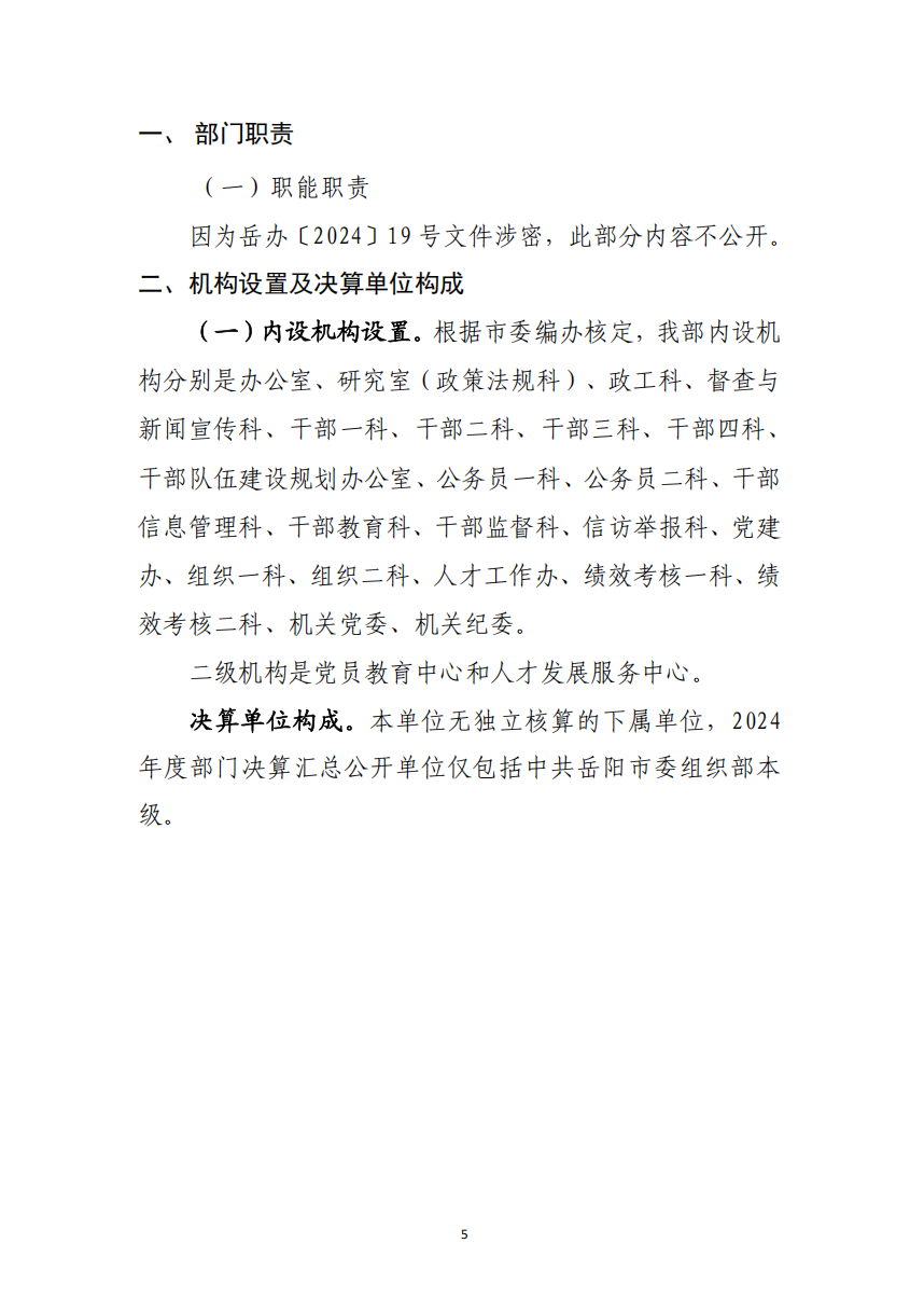 2024年度中共岳阳市委组织部部门决算