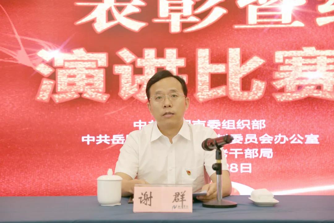 6月28日,市委组织部举行“七一”表彰暨岳阳红色故事演讲比赛,市委常委、市委组织部部长谢群出席并讲话。市委组织部、市委编办、市委老干部局全体机关干部和部分退休老同志参加。