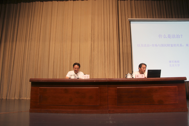 傅军教授从真的概念、道的启示、理论命题与全球实证数据,以及中国发展前景与面临的挑战等八个方面,深入浅出地阐释了法治、市场与国民财富的关系,给听众留下了深刻印象。